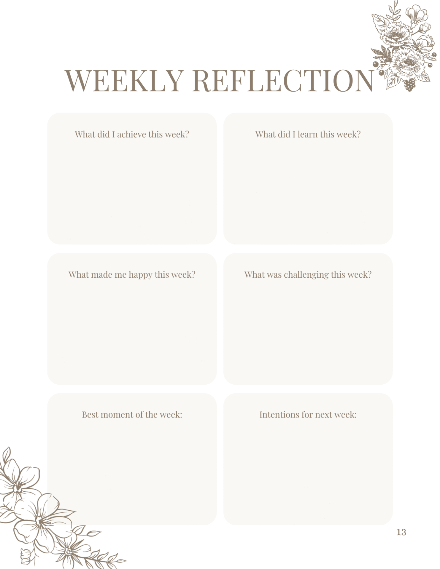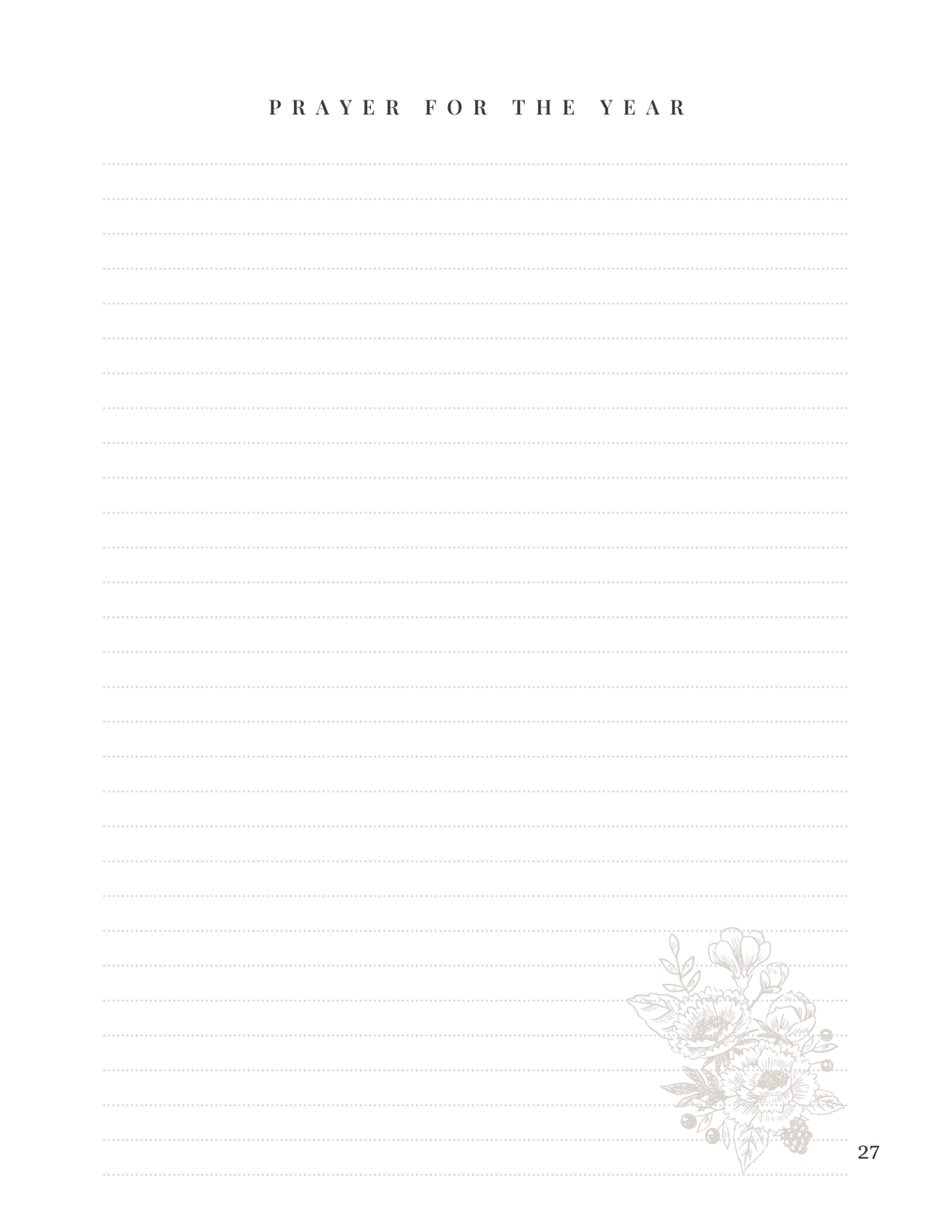 - 🌼 Notes & Gratitude Sections — space to capture ideas, blessings, and answered prayers