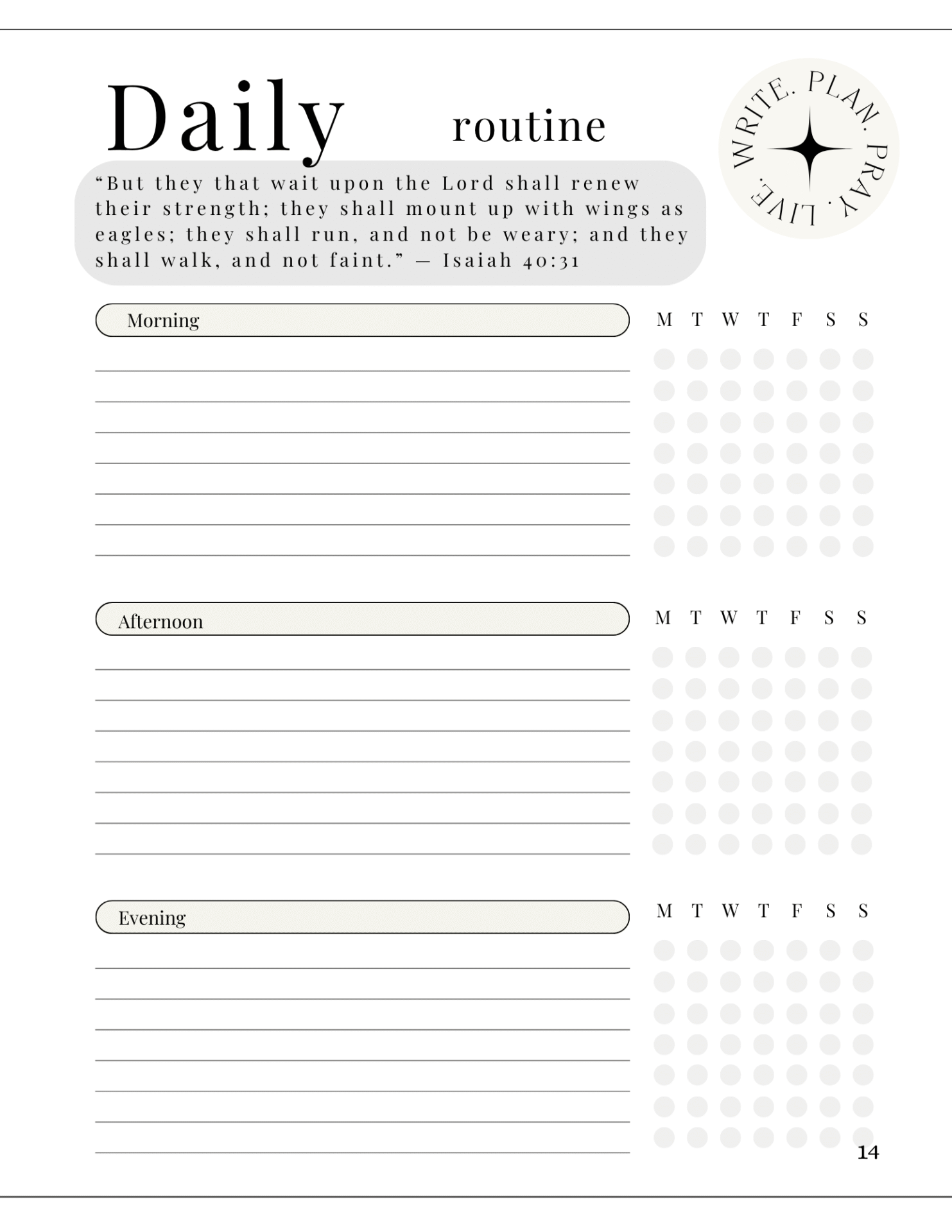 - 🪶 Daily & Weekly Planning Pages — stay organized while keeping Christ at the center